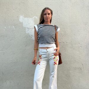 AS-IS *AS IS* ADORABLE!!! 1960S-70S FLORAL EMBROIDERED WHITE BELL BOTTOM JEANS