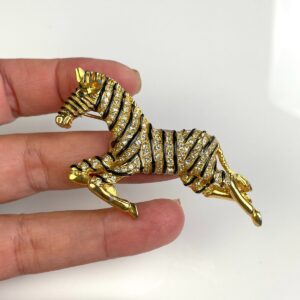ADORABLE! GALLOPING ZEBRA RHINESTONE & ENAMEL BROOCH *SIGNED