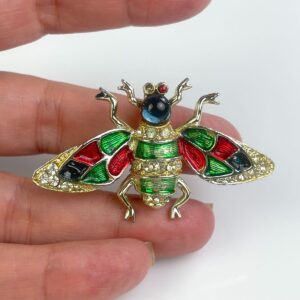 *AS-IS* COLORED ENAMEL & RHINESTONE INSECT BROOCH *MISSING ONE STONE EYE