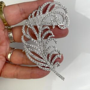*SIGNED* OVERSIZED RHINESTONE FEATHER BROOCH, MADE IN CANADA
