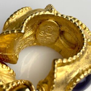 CUTE 1980S VERMEIL GOLD HOOP EARRINGS, COLORED JEWELS *SIGNED K.J.L.