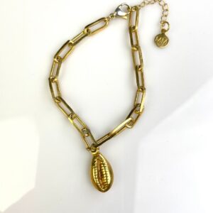 SWEET GOLD PLATED SHELL CHARM CHAIN LINK BRACELET