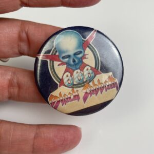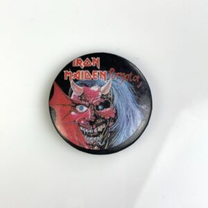 ORIGINAL 1980S IRON MAIDEN PURGATORY GRAPHIC BUTTON PIN
