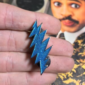 NEW PIN – GLITTER LIGHTNING BOLT SHOCK BLUE