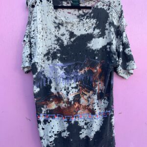 FULLY THRASHED TIE DYE BLEACH WESTERN CAMPFIRE W/ WOLVES GRAPHIC SINGLE STITCH T SHIRT