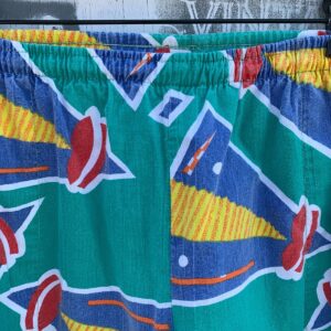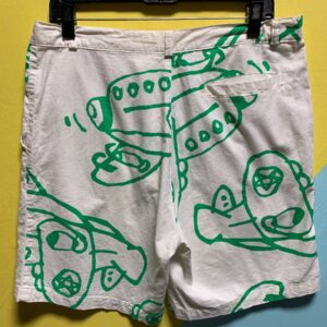 FUN! 1990S ABSTRACT AIRPLANE DESIGN GREEN & WHITE SHORTS