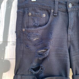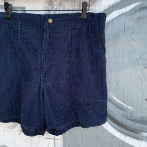 NAVY BLUE CORDUROY HIGH WAISTED SHORTS FRONT WELT POCKETS
