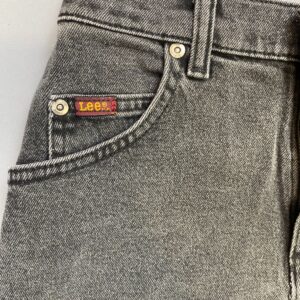 LEE CUT OFF SHORTS FADED BLACK BURGUNDY TAG 28 BROWN LEATHER PATCH