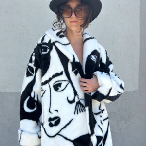 PICASSO FACE ABSTRACT ART FAUX FUR COAT