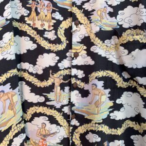 SWEET! 100% RAYON, RETRO CLOUDS & SURF PRINT HAWAIIAN SHIRT, COCONUT BUTTONS