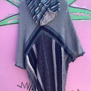 MIXED 3-D KNIT HOODED PONCHO TOP KANGAROO POCKET