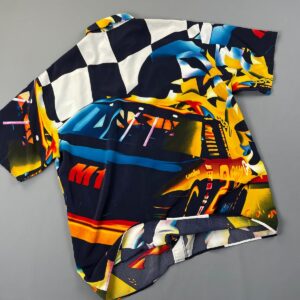 1990S ALLOVER RACING ART PRINT SHORT SLEEVE BUTTON DOWN SHIRT