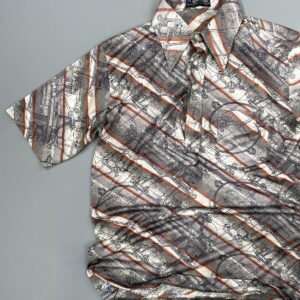 1970S DIAGONAL STRIPED LINE ART PRINT SHORT SLEEVE BUTTON DOWN SHIRT DAGGER COLLAR