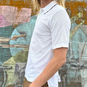 RETRO 1970S-80S SHEER POLO SHIRT STRIPED COLLAR & CUFFS