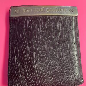 1990S BIFOLD OSTRICH EMBOSSED LEATHER STEEL PLATE WALLET