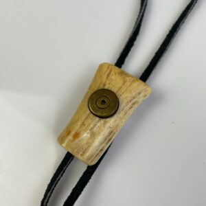ANTLER & BULLET CASING BOLO TIE, SUEDE CORD, BEADED ENDS