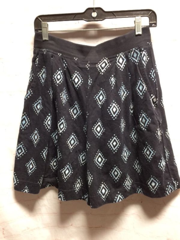 Fenn Wright & Manson shorts, 100% cotton, elastic waist, pleated at waist in front, wide legs, diamond print, front pockets, black/white, size M