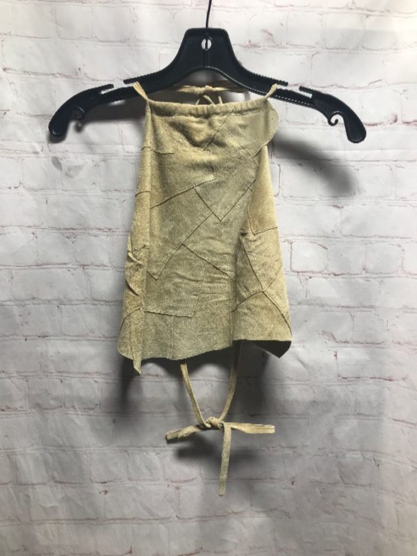 Flava top, cropped, halter style tied at neck & back, suede leather, patchwork design, tan, size M/L