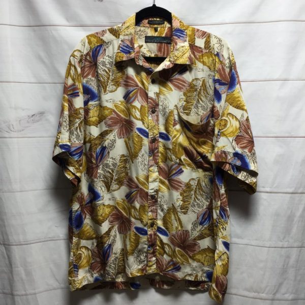 100% RAYON SHORT SLEEVE BUTTON UP SHIRT AUTUMN TROPICAL PRINT
