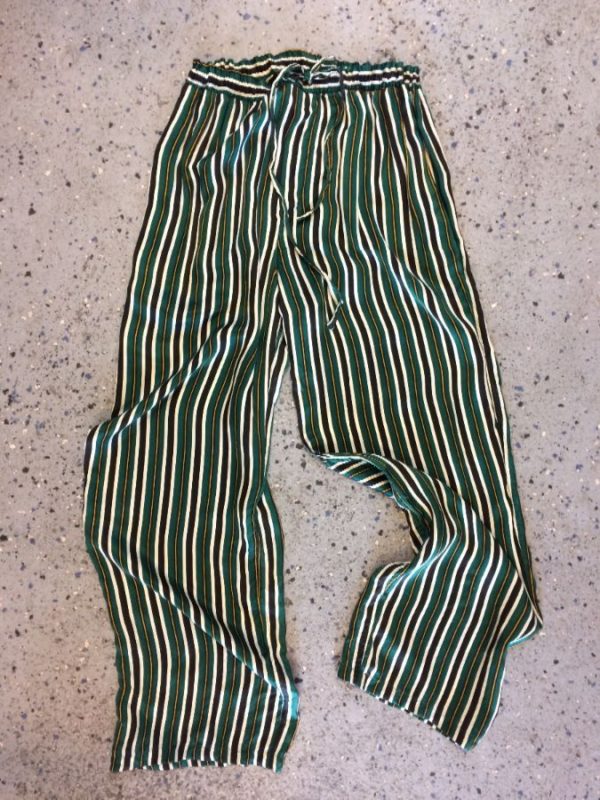 100% SILK STRIPED SILK WIDE LEG FLOWY PANTS