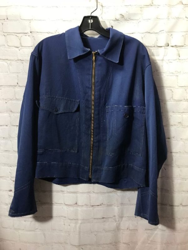 1940’s vintage jacket, gabardine, zip-up, 2 front pockets, contrast stitching, navy, size M as is