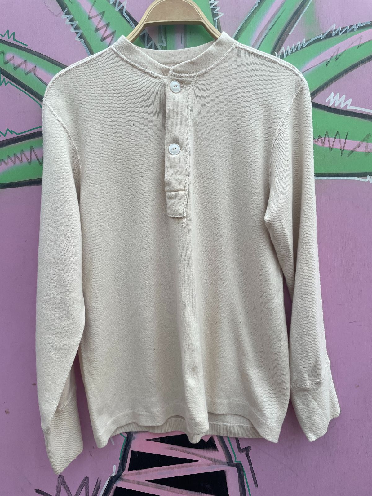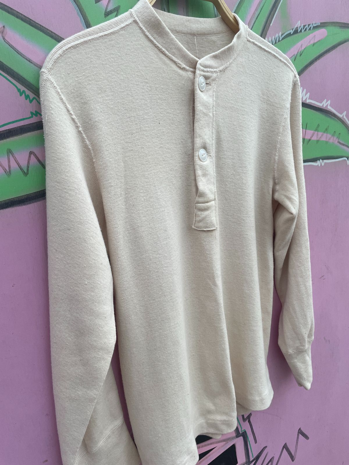 1970S DEADSTOCK VELOUR QUARTER ZIP RIBBED SHIRT NWT – CREME