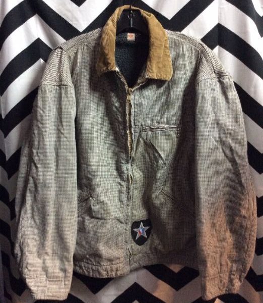 1950’s jacket, zip-up, collar, mini houndstooth design, sherpa lined, sanforized, black/white, size L