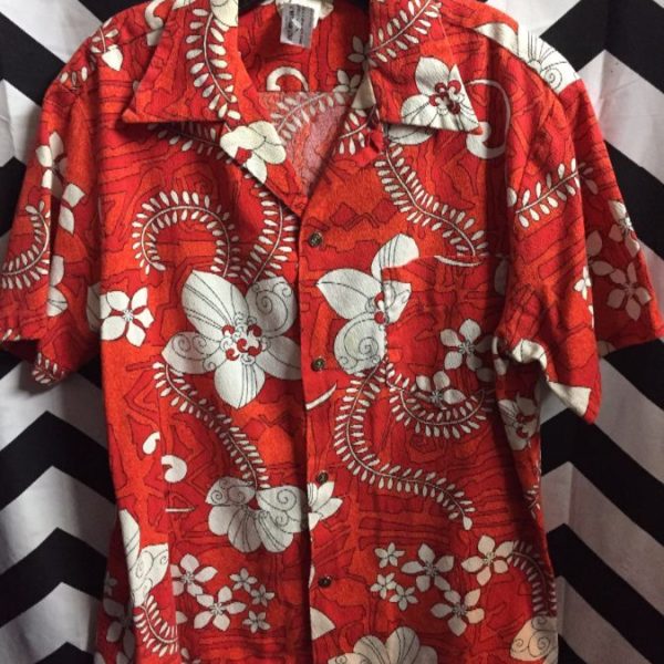 AS-IS AWESOME FLORAL PRINT HAWAIIAN SHIRT W/ WOODEN BUTTONS
