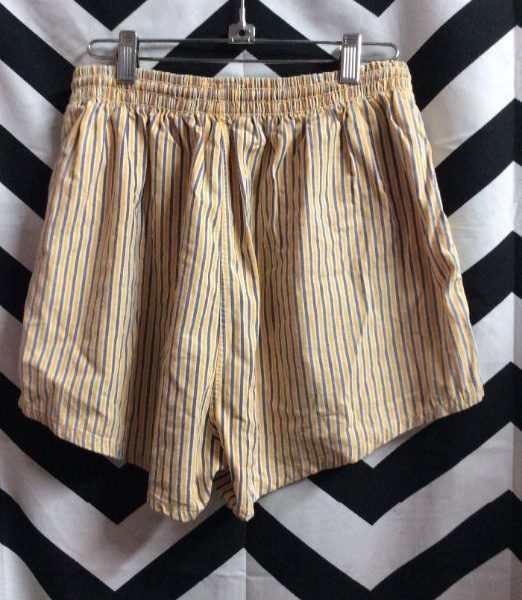 1960’s retro swimming trunks/boxer shorts, vertical striped design, elastic waist, yellow/tan