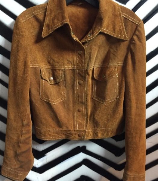 Vintage 1970S CROPPED SUEDE JACKET WHITE STITCHING as-is