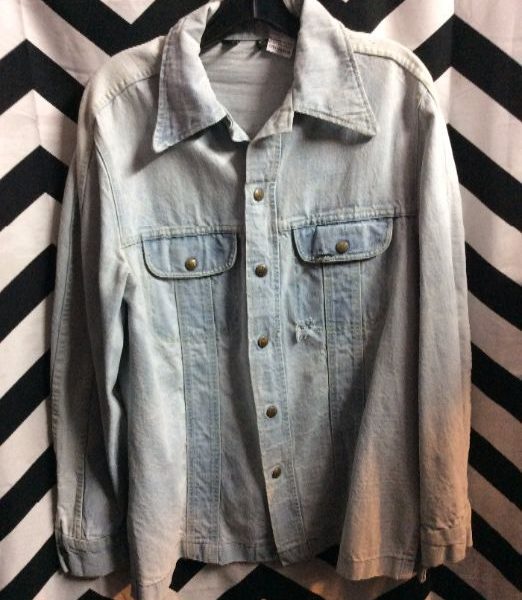 AS-IS RETRO 1970S FADED & WASHED BLUE DENIM TRUCKER JACKET SNAP BUTTONS
