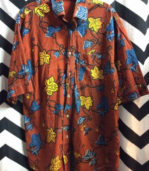 1970’S HAWAIIAN SHIRT – MAPLE LEAF W/VINE PATTERN DESIGN