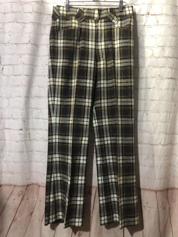 1970’S FUNKY PLAID FLARED LEG POLYESTER PANTS