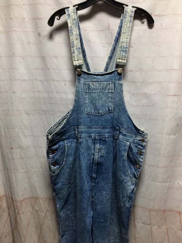 1980’S-90’S LIGHT ACID WASH DENIM OVERALLS W/ BUTTON-UP SICES
