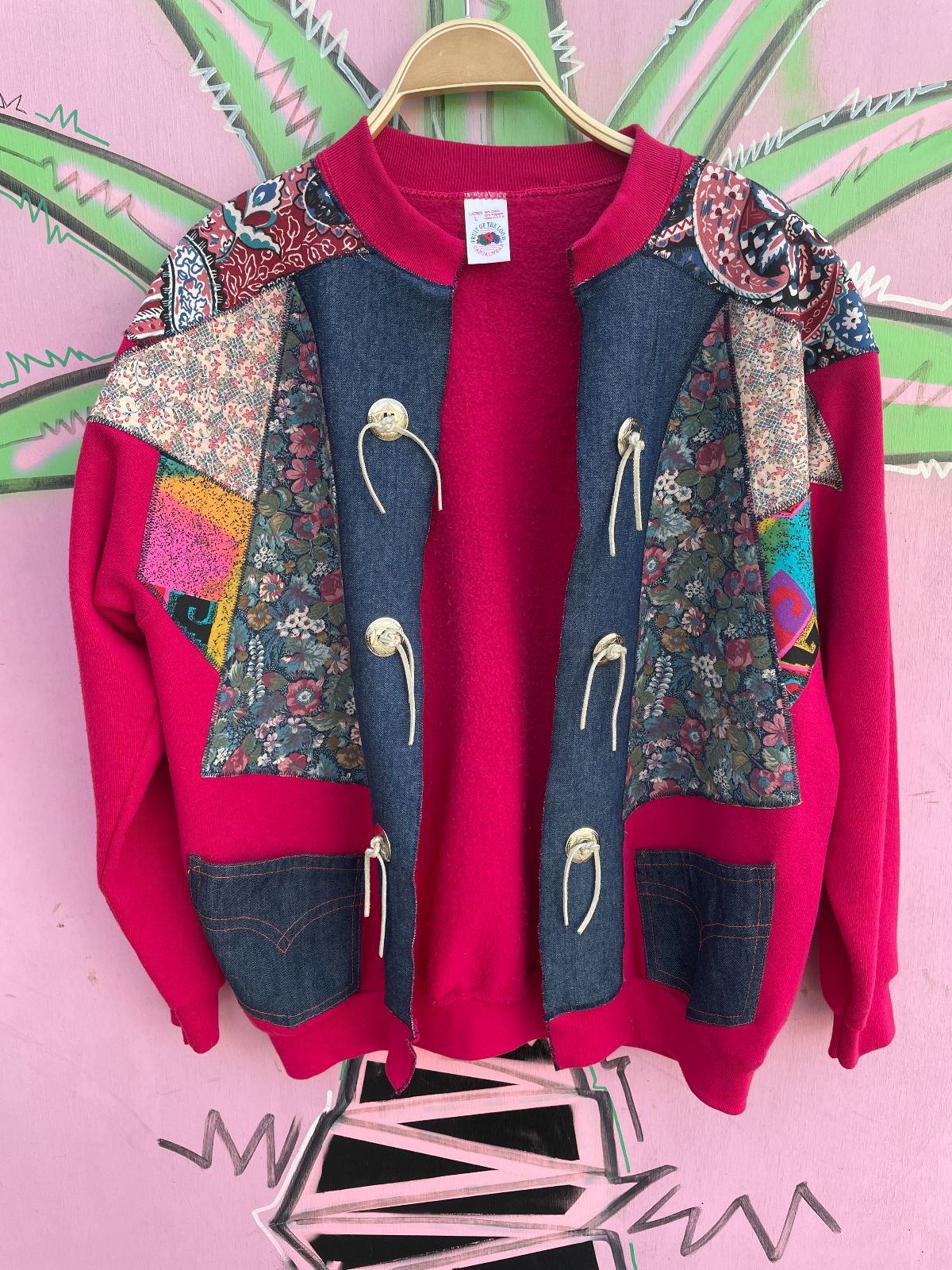 FUN 1980S KNIT PATCHWORK STYLE CARDIGAN SWEATER