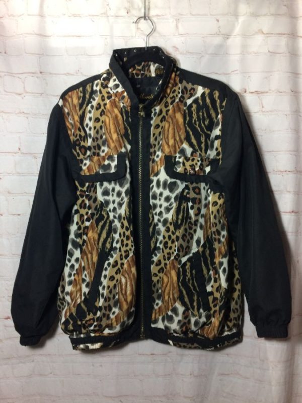 1980’S ANIMAL PRINT DESIGN W/ STUDDED COLLAR ZIP-UP WINDBREAKER JACKET