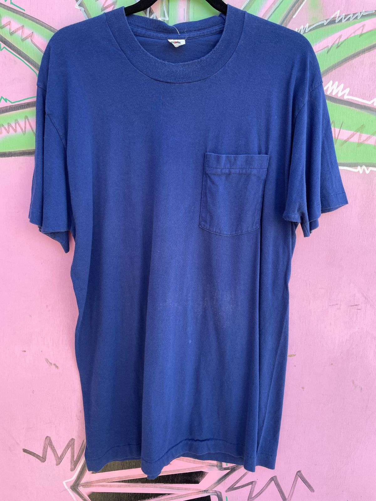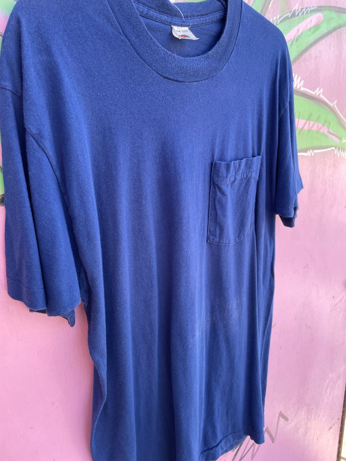 1980S BLANK BLUE SINGLE STITCH POCKET TEE