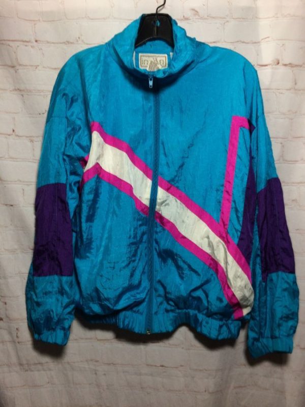 1980’s Insan windbreaker jacket, zip-up, color-block design, blue/pin/white, size M