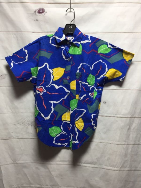 1980S COTTON FUNKY PRINT SHORT SLEEVE BUTTON UP BLOUSE