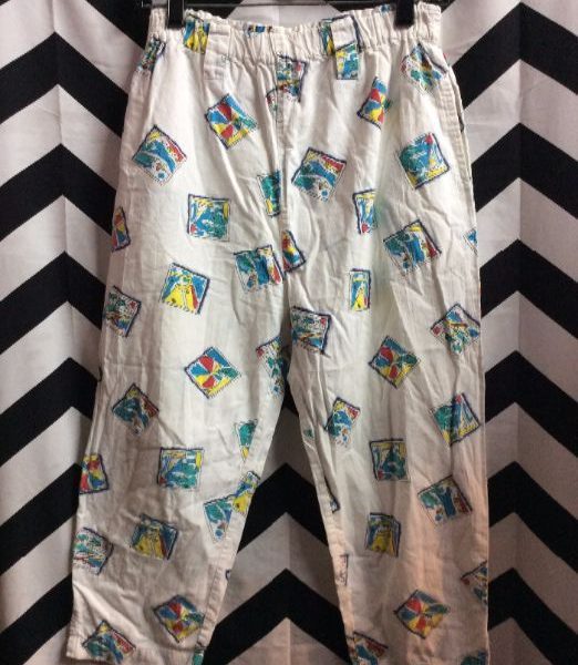 1980’S BEACH PANTS – CROPPED – COTTON – PRINTED SQUARES DESIGN
