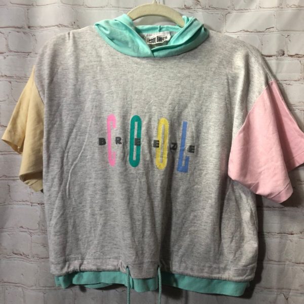 1980’S CROPPED PASTEL COLOR-BLOCK HOODED SHIRT COOL BREEZE GRAPHIC