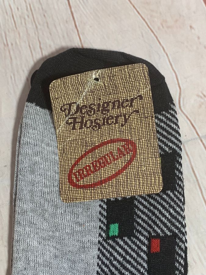 1980’s Designer Hosiery socks, geometric checkered design laid out in rows, solid colored toes/heels/tops, dead-stock, NWT, gray/black/yellow/red/green/orange