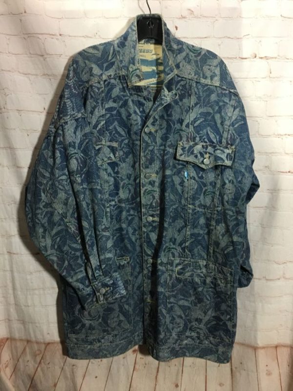 1980’S FLORAL DESIGN DENIM TRENCH COAT