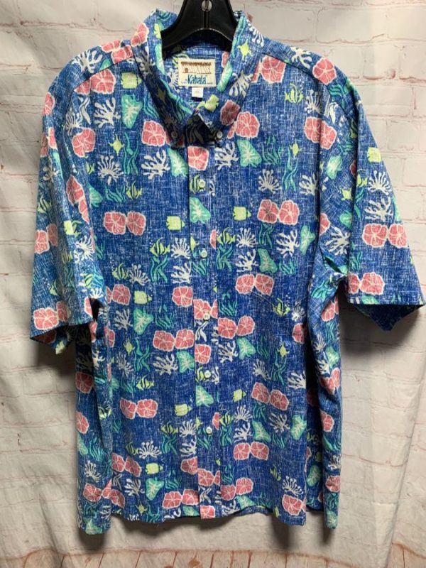 1980’s Kahala Hawaiian shirt, inside out look, short sleeves, button-up, undersea print, blue/red/green/white/lime green, size XL