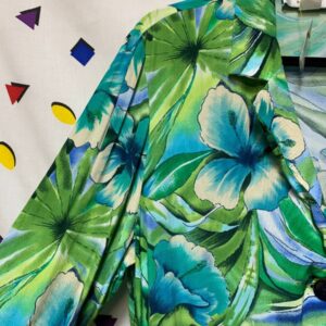 TROPICAL RAYON LONGSLEEVE BUTTON DOWN HIBISCUS ALOHA DRESS / LIGHT WEIGHT JACKET