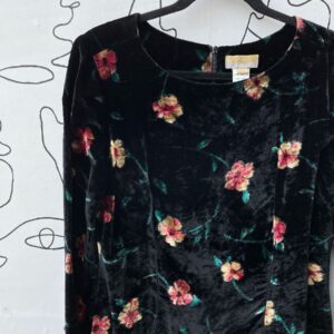 AS IS LONG SLEEVE FLORAL DESIGN CRUSHED VELVET DRESS