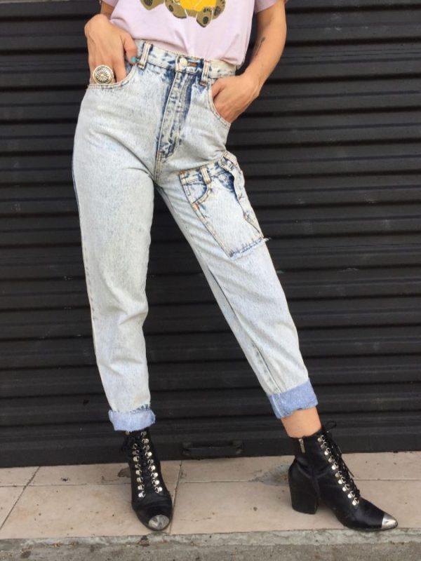 1980S JORDACHE HIGH WAISTED LIGHT ACID WASH DENIM JEANS CRAZY POCKETS – AS IS