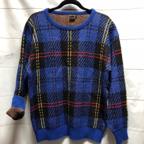 1980S KNIT PULLOVER FUNKY MONDRIAN STYLE PLAID