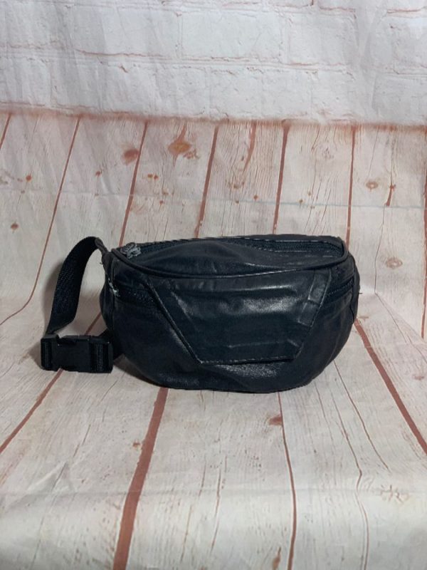 1980’S LEATHER FANNY PACK W/ TRIANGLE FLAP & 2 ZIP-UP COMPARTMENT