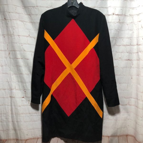 1980’S COLOR-BLOCK DESIGN DRESS W/ ZIP-UP NECK IN BACK